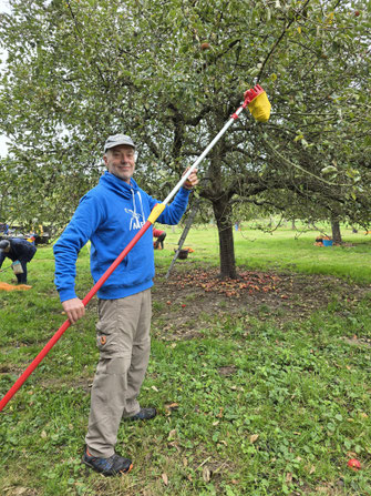 Manfred Tammen vom NABU Wedemark hatte am Samstag, den 27.09.2025, zur Obsternte auf der Streuobstwiese Mellendorf eingeladen.
