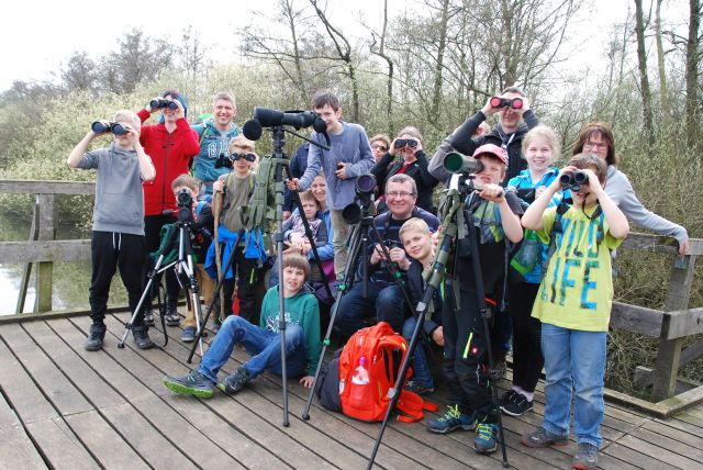 Naturschutzjugend bei der Vogelbeobachtung; Foto: B.Butsch, NABU Wedemark
